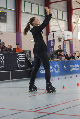 "Au départ, j'ai commencé le roller à l'âge de 8 ans parce que mon grand frère en faisait. Et puis, avec le temps, je me suis spécialisée dans le slalom